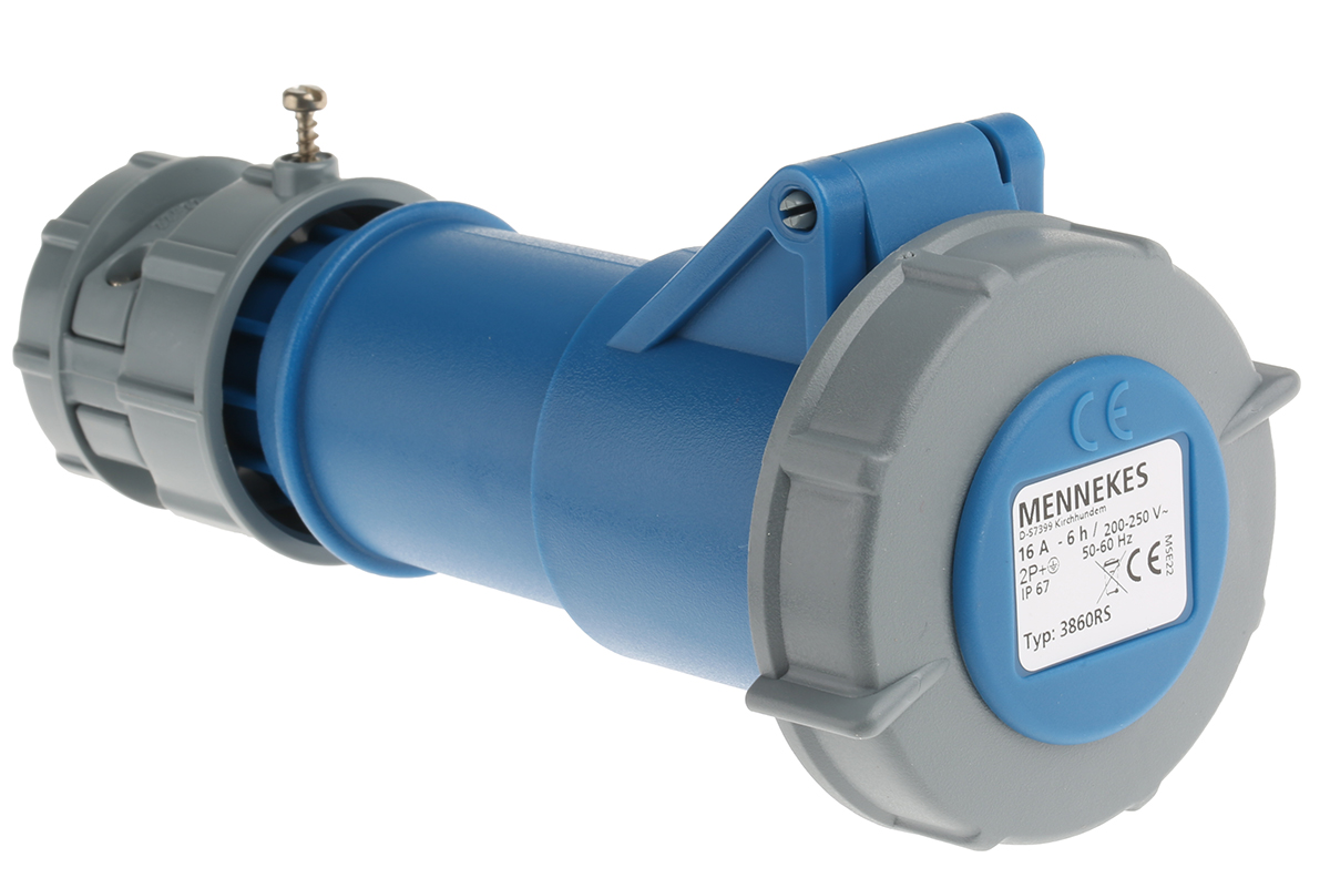 Złącze przemysłowe - zasilające 16A Gniazdo 230 V 3P Żeński MENNEKES Niebieski Montaż na kablu IP67