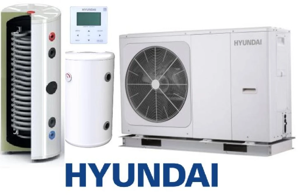 Zestaw Pompa Ciepła HYUNDAI Monoblok 8kW + Zbiornik buforowy SL 130L + SOLITANK Zasobnik stojący CWU 245L z wężownicą 3.83m2