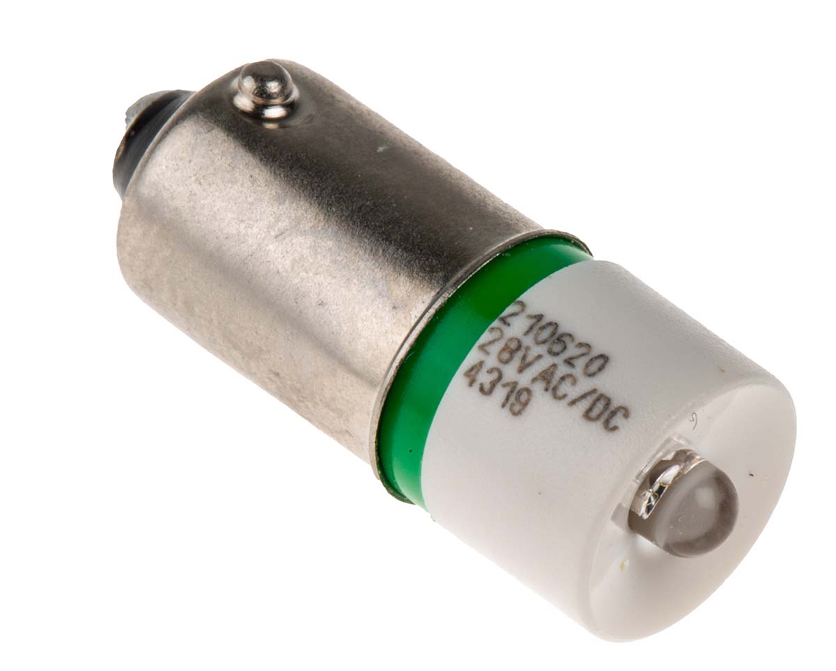 1. Lampka kontrolna Zielony 28V ac/dc BA9s LED średnica 10mm długość 24mm 61.68