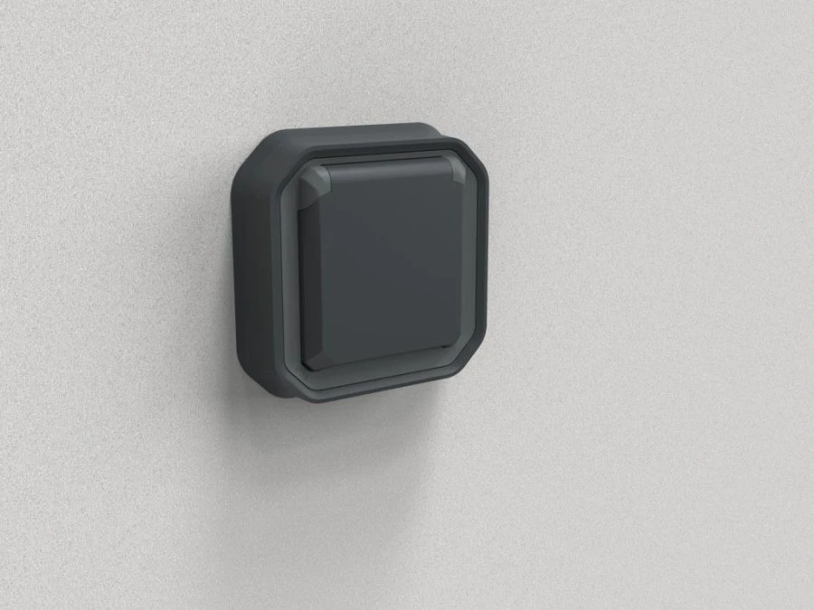 6. PLEXO IP55 Gniazdo pojedyncze z uziemieniem z klapką szare 069831 LEGRAND 54.67