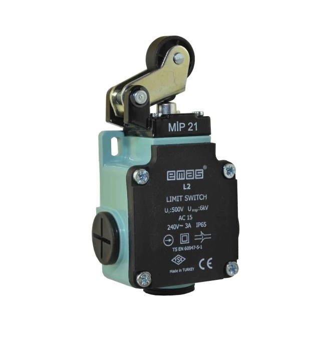 Łącznik L2 w obudowie aluminiowej z plastikową pokrywką, 1NC+1NO, popychacz z dźwignią poziomą z rolką z tworzywa, T0-L2K13MIP21