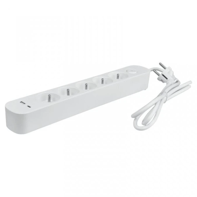 5. Listwa ochronna DPM z wyłącznikiem - 5 gniazda AC, 1x USB-A, 1x USB-C 1,5M biała 49.82