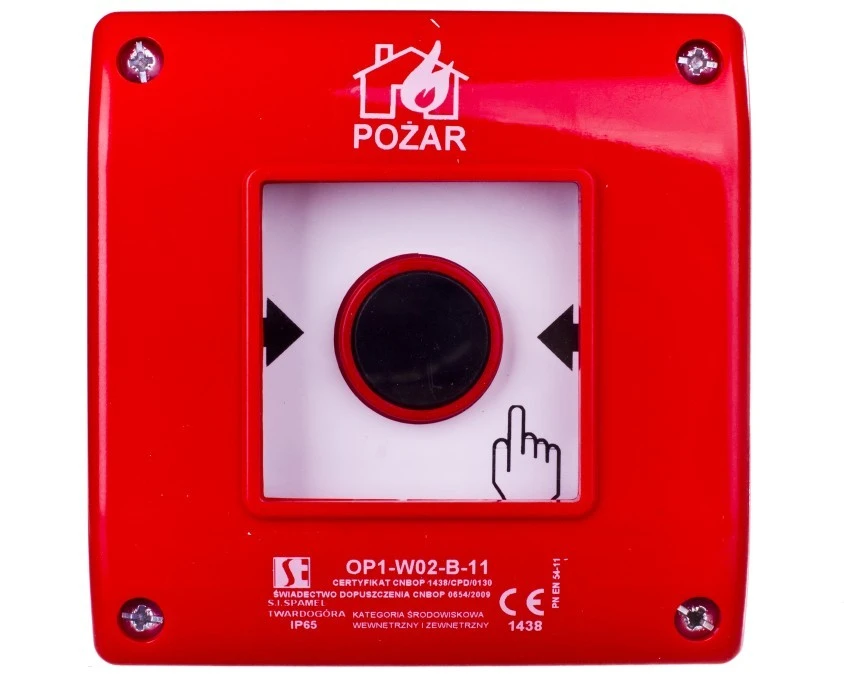 3. Przycisk ppoż. natynkowy 1Z 1R czerwony z młotkiem OP1-W01-B11-M 159.91