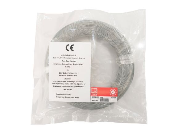 8. Przewód montażowy 0,2mm² Szary RS PRO ETFE 24 AWG 300 V dł. 50m 1/0,51 mm +160°C 137.44