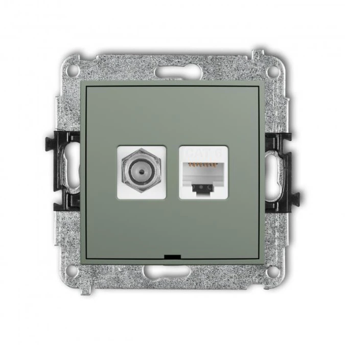 4. MINI Mechanizm gniazda antenowego poj. typu F (SAT) + gniazda komp. 1xRJ45, kat. 6, 8-stykowy, bez opisu szałwiowy 61MGFKBO-3 87.93