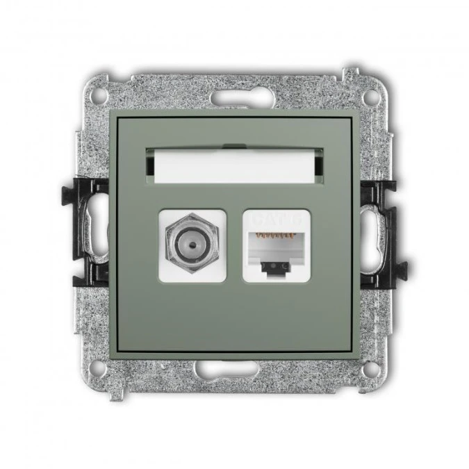 MINI Mechanizm gniazda antenowego poj. typu F (SAT) + gniazda komp. 1xRJ45, kat. 6, 8-stykowy, bez opisu szałwiowy 61MGFKBO-3