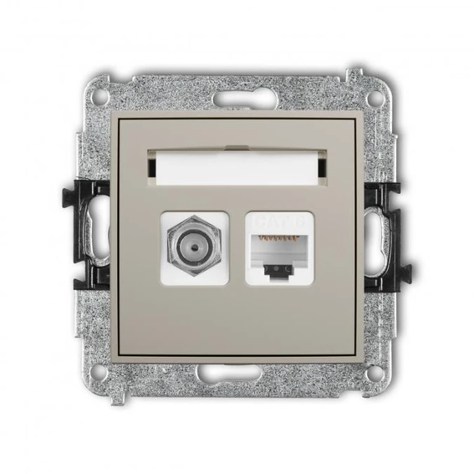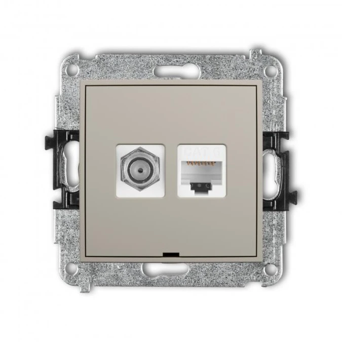 6. MINI Mechanizm gniazda antenowego poj. typu F (SAT) + gniazda komp. poj. 1xRJ45, kat. 6, 8-stykowy taupe 60MGFK-3 87.93