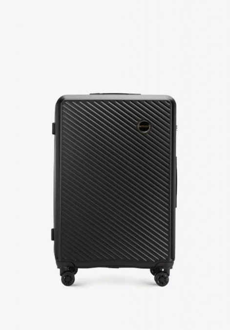 Duża walizka z ABS-u w ukośne paski czarna 56-3a-743-10