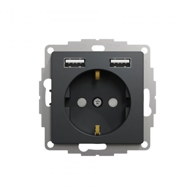 Gniazdo zasilające Schuko + podw gniazdo ład USB typ A 2,4A, czarny antr, Sedna Design i Elements SDD114052