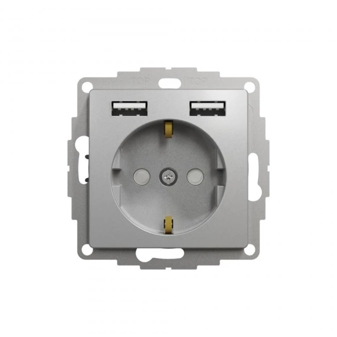 Gniazdo zasilające Schuko + podw gniazdo ład USB typ A 2,4A, srebrne alum,Sedna Design i Elements SDD113052