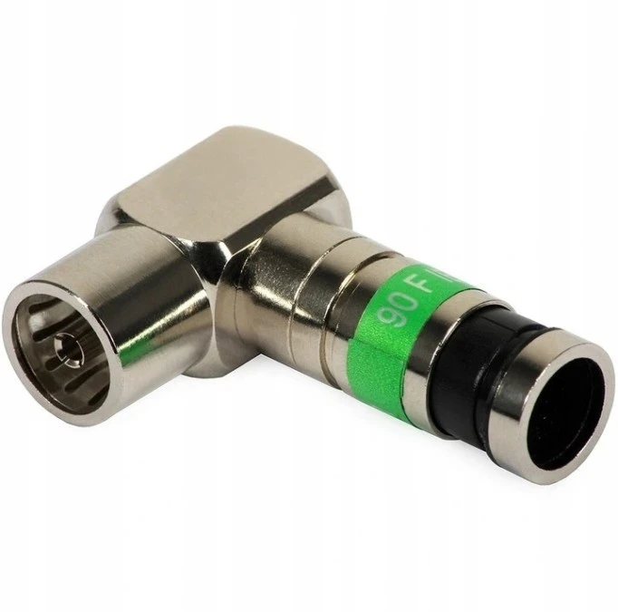 15. Gniazdo antenowe IEC TV kompresyjne kątowe zielone MASTER na przewód Triset-113 5.33