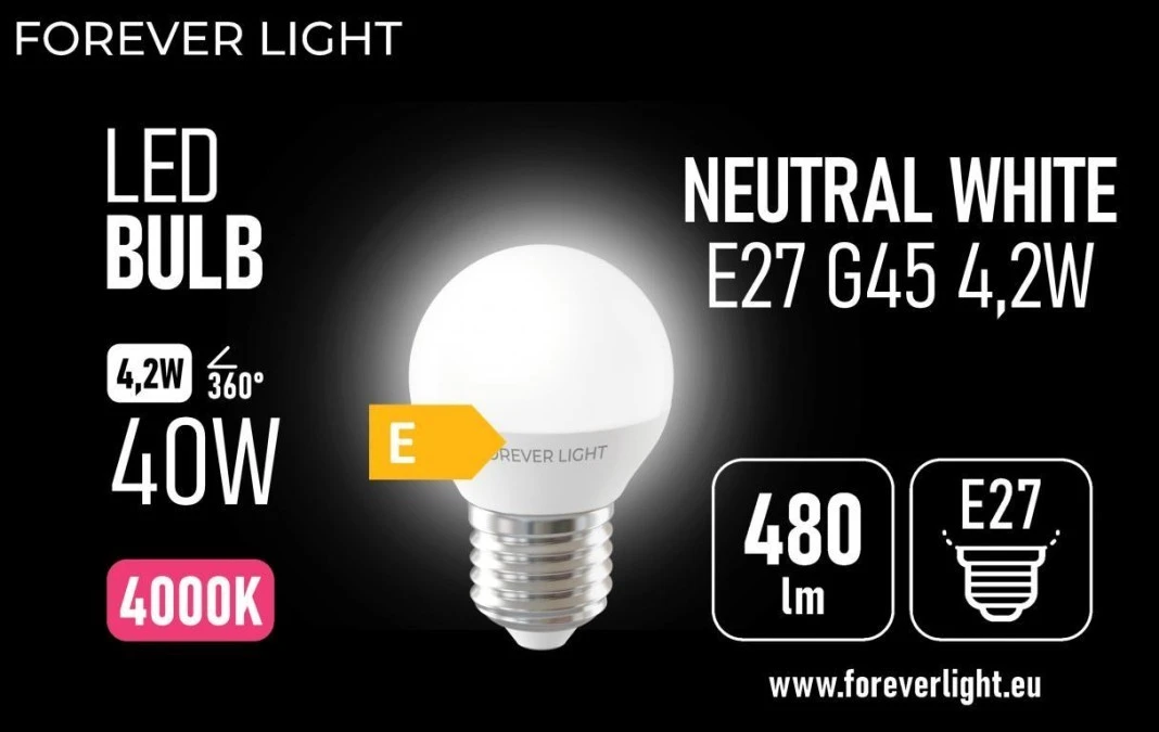 Żarówka LED E27 G45 4.2W 480lm 4000K klasa E Forever Light