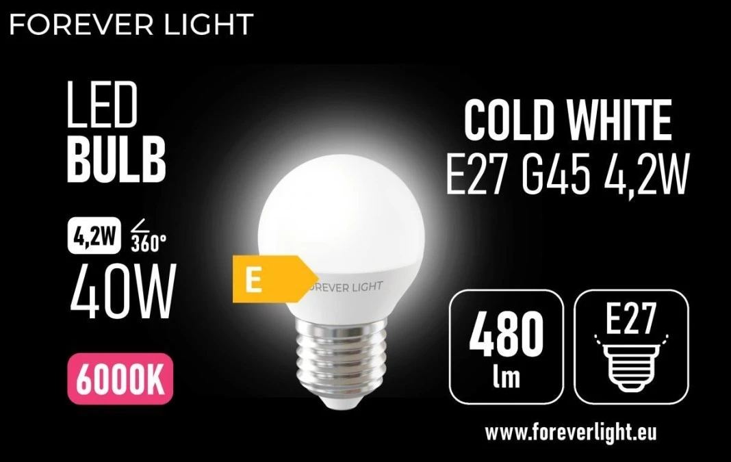 10. Żarówka LED E27 G45 4.2W 480lm 6000K klasa E Forever Light 3.57
