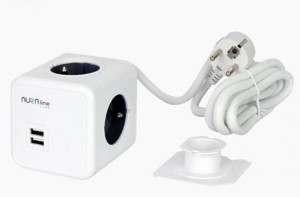 AURA line CUBE przedłużacz rozgałęźnik 4 gniazda + 2xUSB przewód 1,5m 16A/3680W
