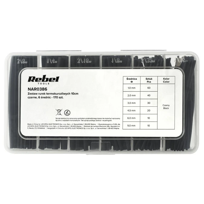 Zestaw rurek termokurczliwych 170szt. 10cm CZARNE 6 średnic