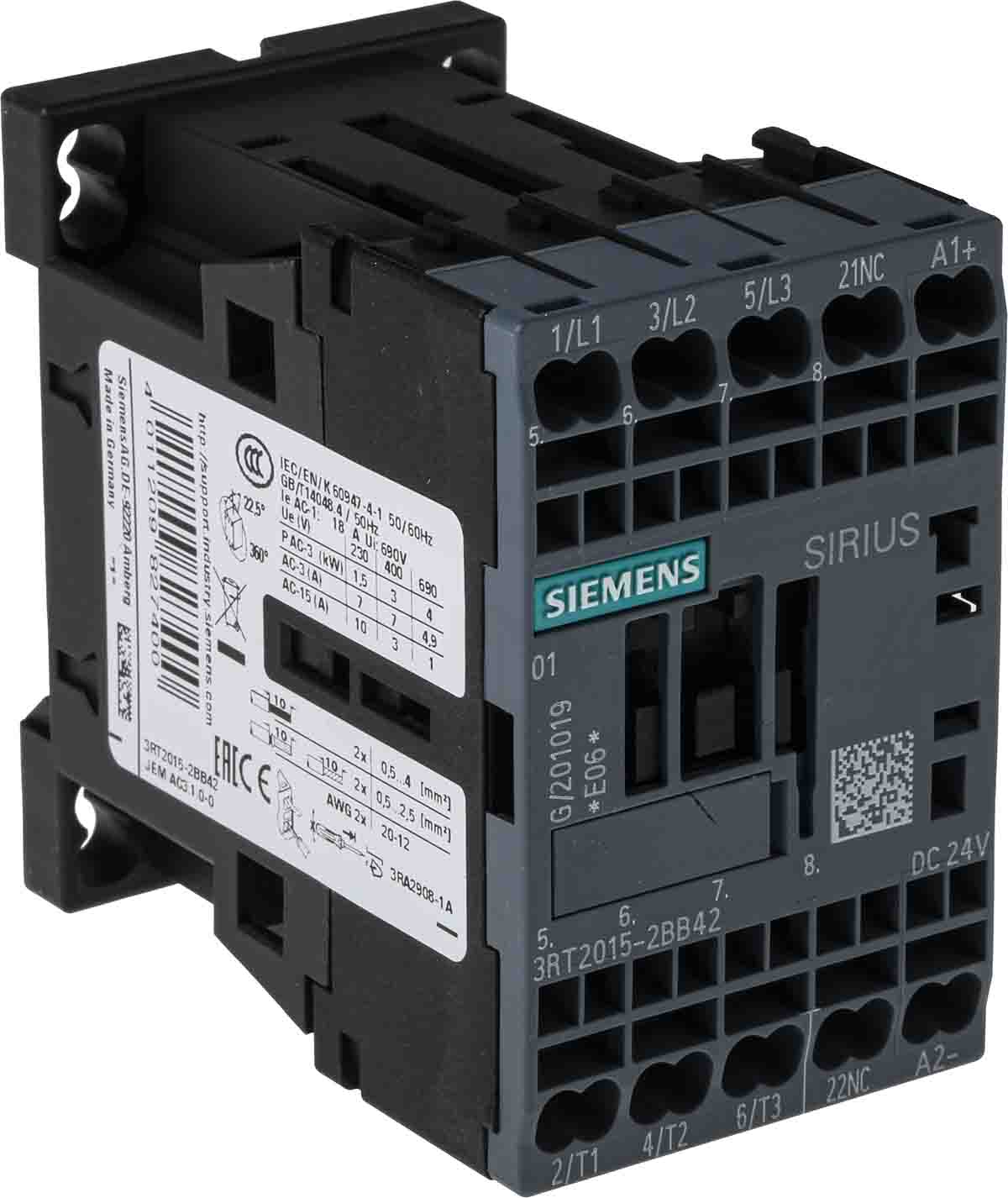 Stycznik 24 V dc Siemens styki: 3 3 kW 7 A 3NO Montaż na szynie DIN Zacisk klatkowy 3RT2015-2BB42