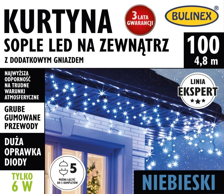 1. Kurtyna świetlna zewnętrzna 100l kurtyna sople z dod.gniazdem 5m dekoracji+1,5m przewodu zasilającego 75-656 304.47