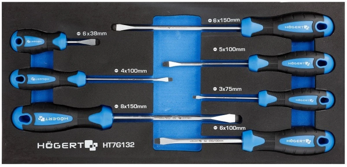 Zestaw wkrętaków płaskich 7 szt., wkład EVA HT7G132