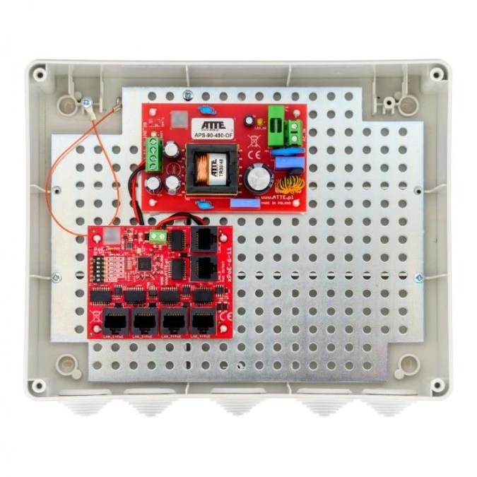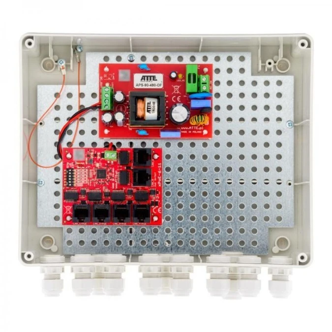 2. Zestaw do 5 kamer IP switch PoE 5P+1UP w obudowie zewnętrznej ABOX-L3, zasilacz 96W 555.22