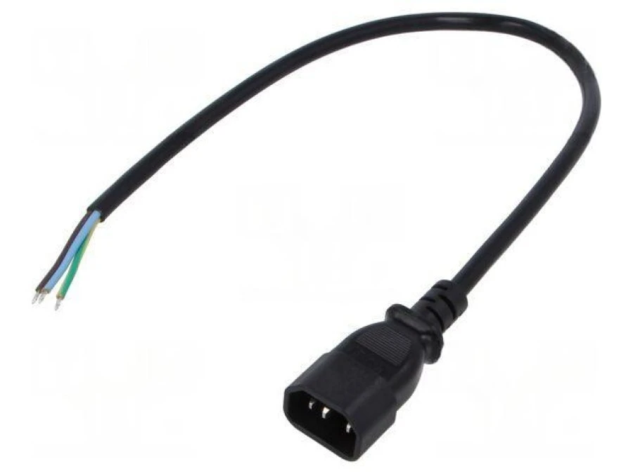 2. Kabel: 3x0,75mm2, IEC C14 męski, 0,5m, 10A LT-602 H05VV-F 3X0.75 BLK 0.5M END 10.50