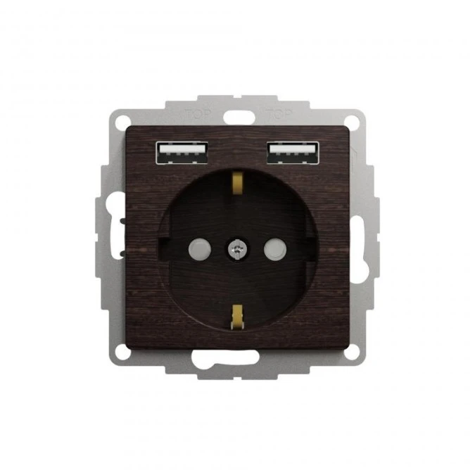 Gniazdo zas Schuko+ podw gniazdo ład USB typ A 2,4A, wenge, efekt drewna, Sedna Design i Elements SDD181052