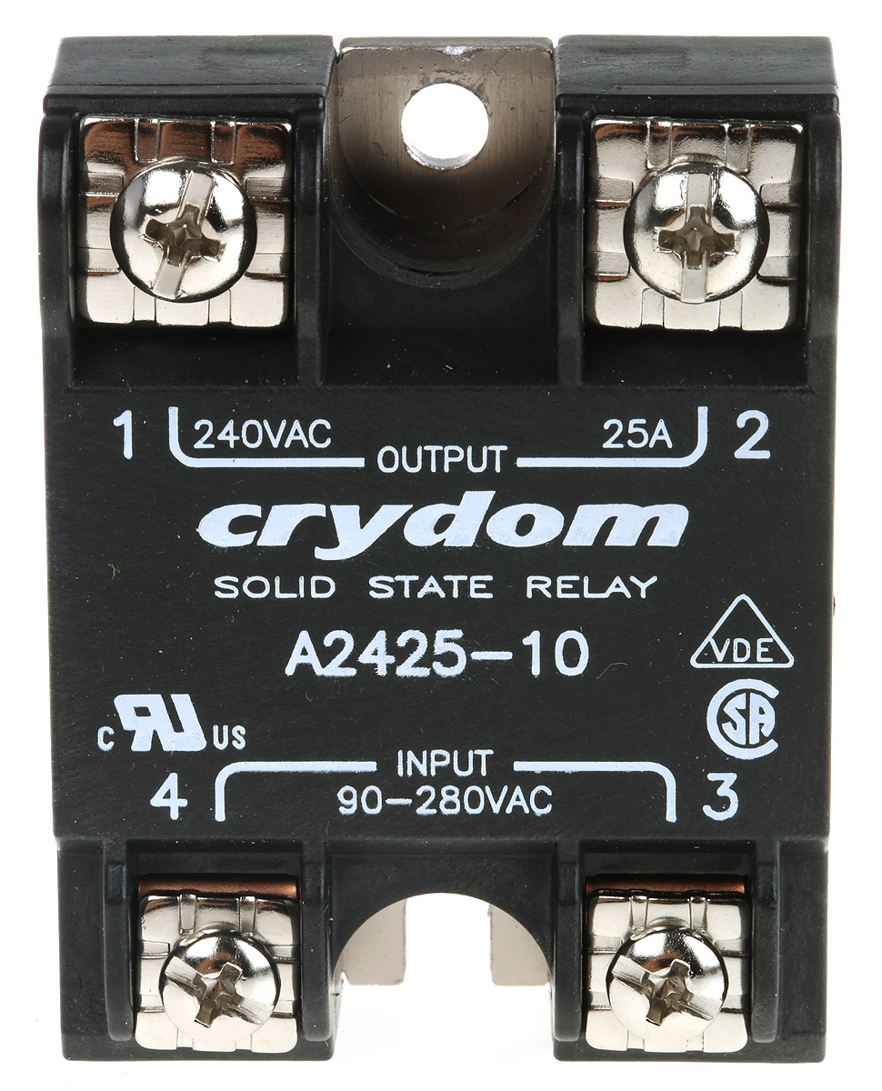 4. Przekaźnik półprzewodnikowy Montaż na panelu 25 A Sensata Crydom 280 V rms SCR SPST 336.48