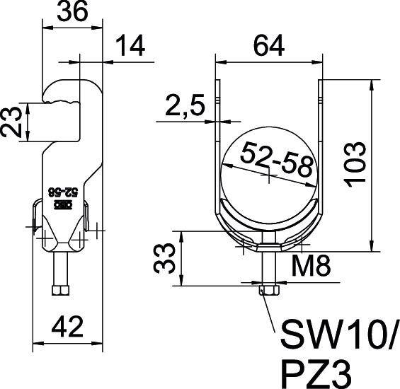 Zacisk U z podstawą RS, metalowa taca dociskowa z ...