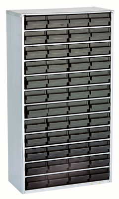 ESD steel magazine, with 48 drawers, black, (W x D) 306 x 150 mm, ESD STAHLMAGAZIN 1248-01