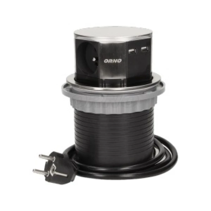Gniazdo meblowe, wysuwane z blatu 3x250V AC z ładowarką USB i przewodem 1,5m, INOX OR-AE-1381