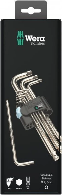 3950/9 Hex-Plus Stainless 1 SB Zestaw kluczy trzpieniowych ze stali nierdzewnej, metrycznych, w opakowaniu z zawieszką, 9 części