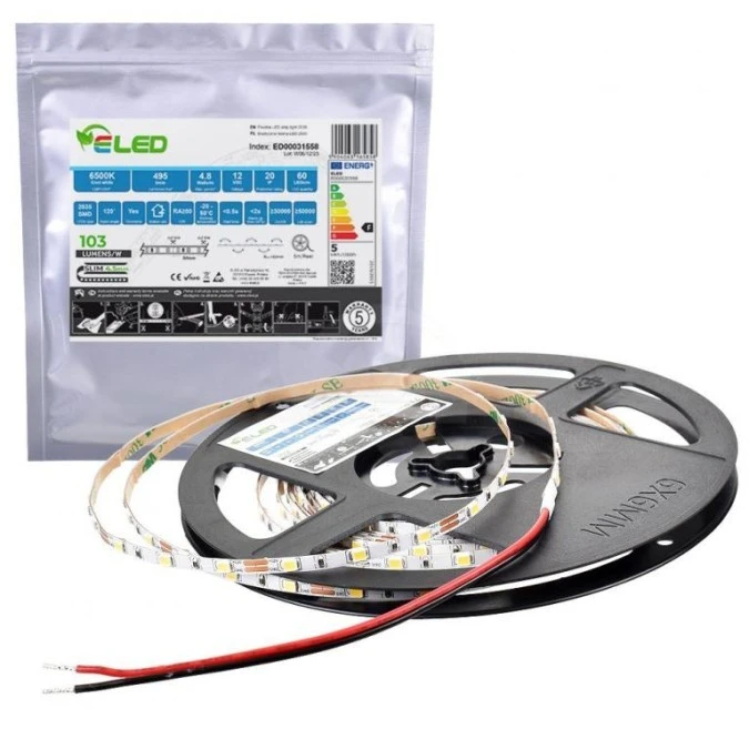 1. Taśma LED 2835 Slim 300 SMD 12V 4.8W 102lm/W zimna 6500K IP20 - ED00031558 /odcinki po 5 m/ 77.55
