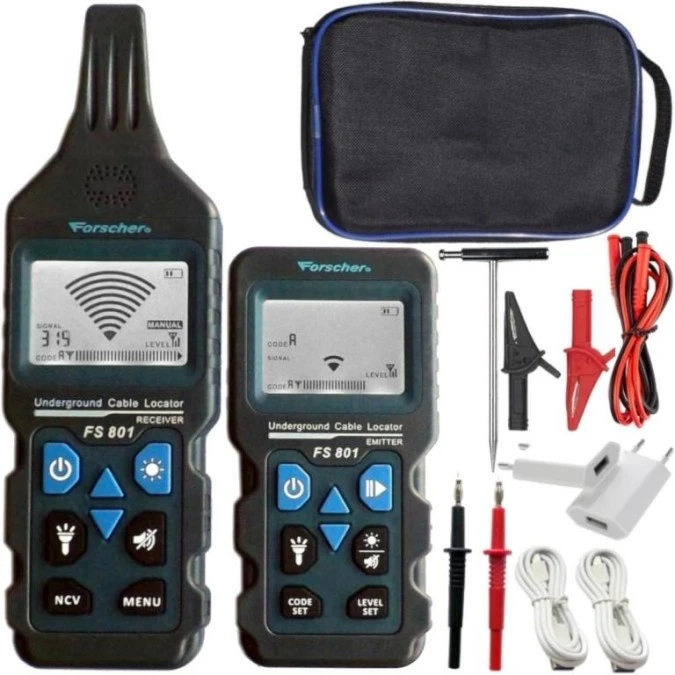 1. Wykrywacz przemysłowy PREMIUM do kabli i rur prowadzonych w ścianie, podłodze i ziemi FORSCHER FS801D 1107.41