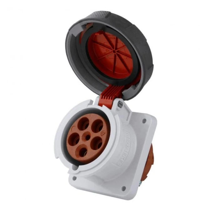 13. Złącze przemysłowe - zasilające 32A Gniazdo 400 V 4P Żeński MENNEKES Czerwony Montaż na panelu IP44 283.23