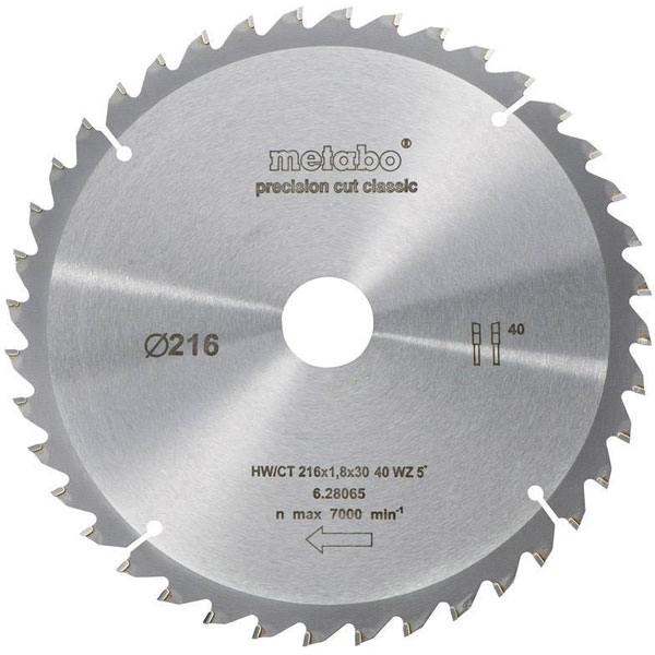 1. Metabo 628065000 Classic Circular Saw blade 216mm 40T wood cutting 130.33