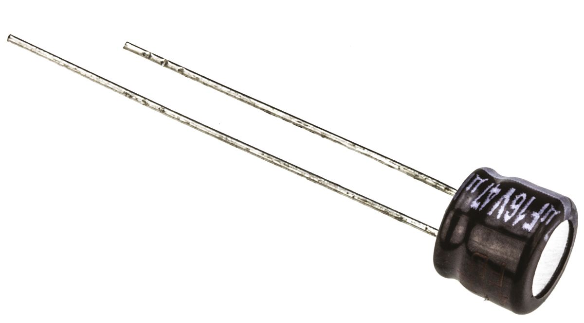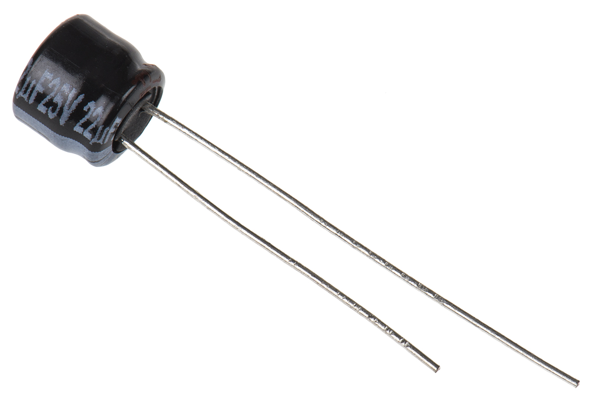5. Kondensator 22μF 25V dc Radialny, Otwór przelotowy Panasonic roztaw: 2.5mm 6.3 (Dia.) x 5mm 0.50 x200