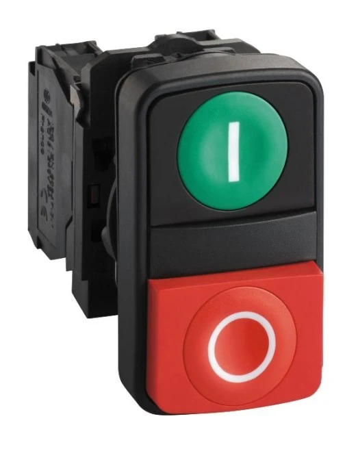 Przycisk ziel. kryty/czerw. wyst. dwuklawiszowy O22 z ozn. XB5AL73415