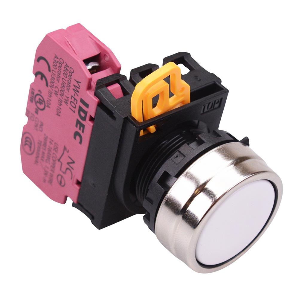 YW4B-A1E10W White 22mm Metal Bezel Maintained Push Button Switch NO IP65 IDEC