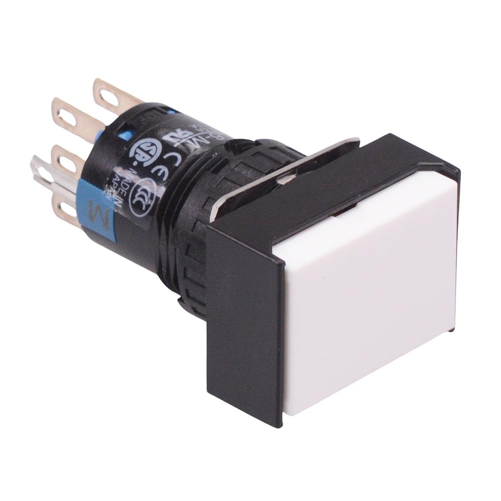 AB6H-A2PWC White 16mm Latching Rectangle Push Button Switch IP65 DPDT