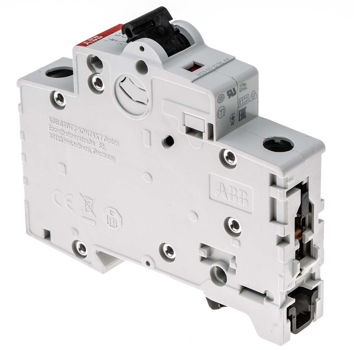 Wyłącznik nadprądowy MCB, Typ C, 1-biegunowy, 4A, 253V, 72V, na szynę DIN, ABB S201-C4, S200