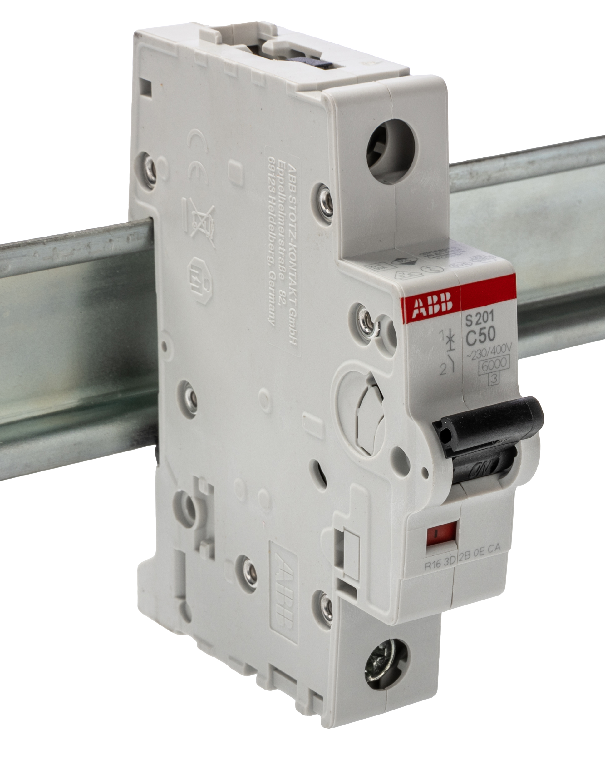 Wyłącznik nadprądowy MCB, Typ C, 1-biegunowy, 50A, 230V, 72V, na szynę DIN, ABB S201-C50, S200