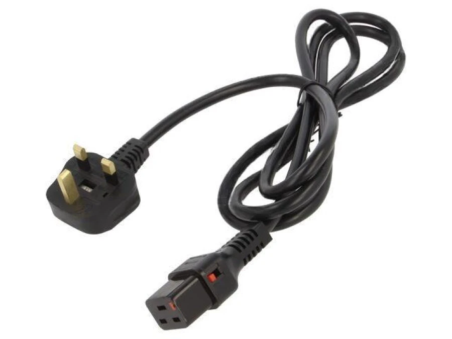 Kabel BS 1363 (G) wtyk, IEC C19 żeński 2m z blokadą IEC LOCK IL19-UK1-H05-3150-200