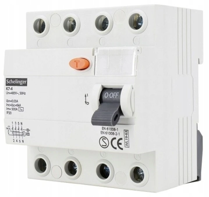 6. Wyłącznik różnicowoprądowy AC 4P 25A 30mA Schelinger A03-V7-4-25-030 85.24