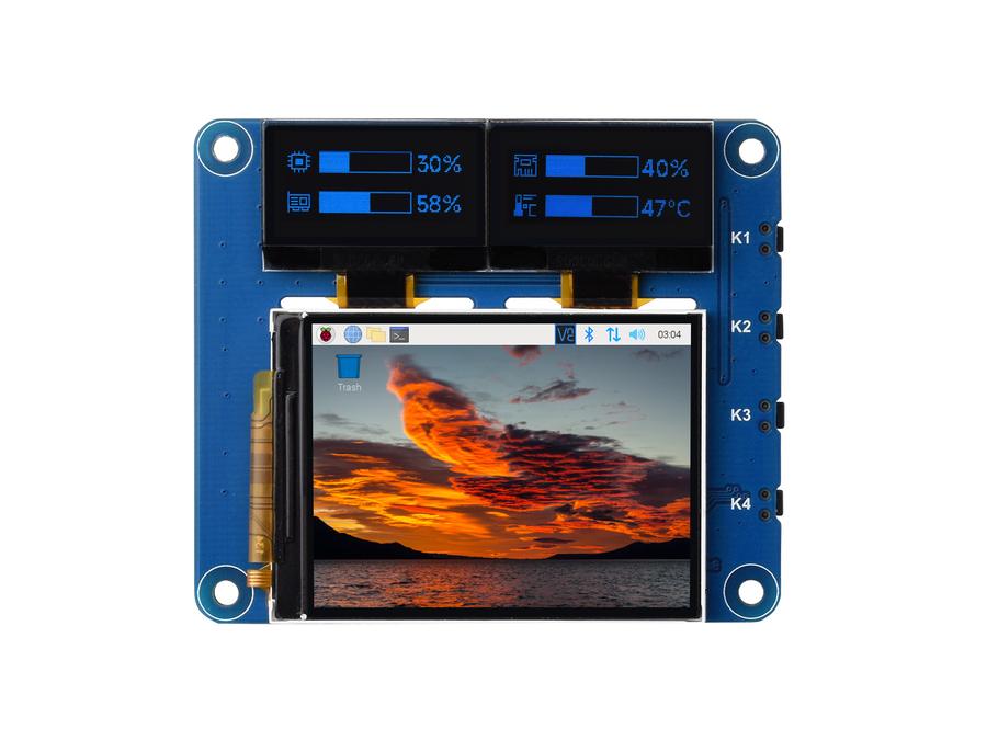 5. Waveshare Raspberry Pi OLED/LCD HAT, Onboard 2inch IPS LCD Main Screen and Dual 0.96inch Blue OLED Secondary Screens 50.34