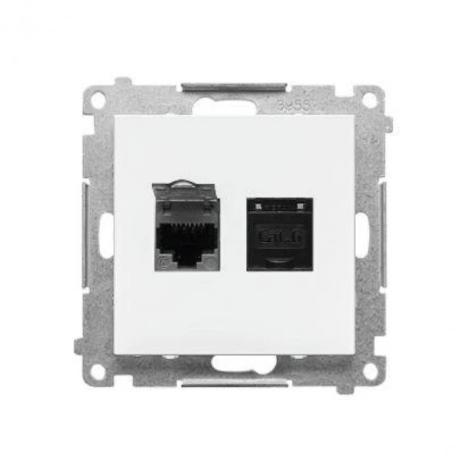 Simon 55 Gniazdo komputerowe podwójne RJ45 kategoria 6, z przesłoną przeciwkurzową (moduł) Biały mat T62.01/111