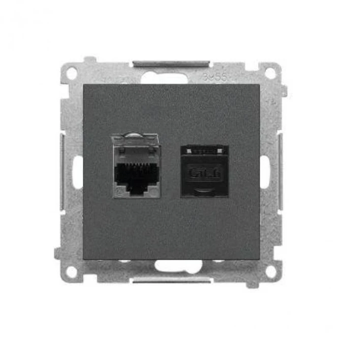 Simon 55 Gniazdo komputerowe podwójne RJ45 kategoria 6, z przesłoną przeciwkurzową (moduł) Grafitowy mat T62.01/116