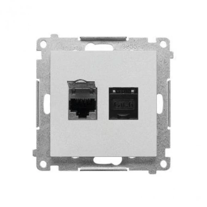Simon 55 Gniazdo antenowe satelitarne podwójne SAT-SAT-RTV (moduł). 2x Wejście: 5 MHz÷2,4 GHz Biały mat TASK2.01/111