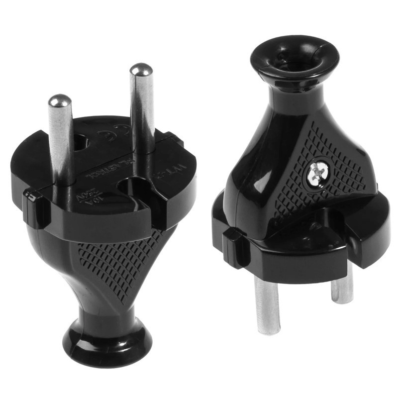Wtyk Sieciowy 10A/230V Okrągły WT-2 Czarny, bez uziemienia