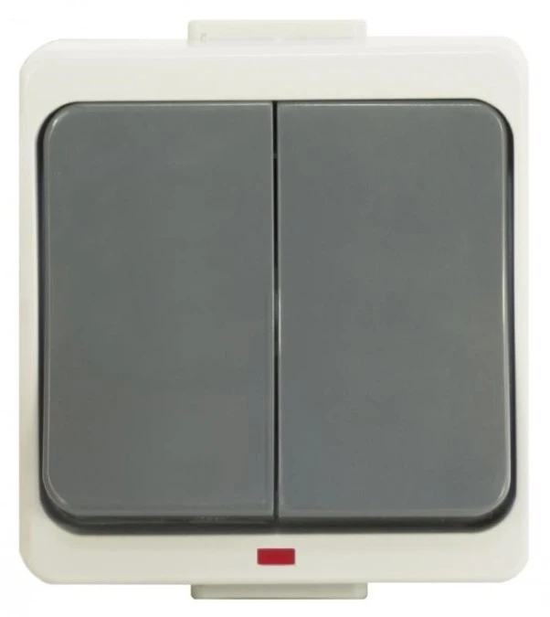 B2 IP54 Wyłącznik podwójny świecznikowy n/t podświetlany WNT-2B2/S szary/czarn ABEX