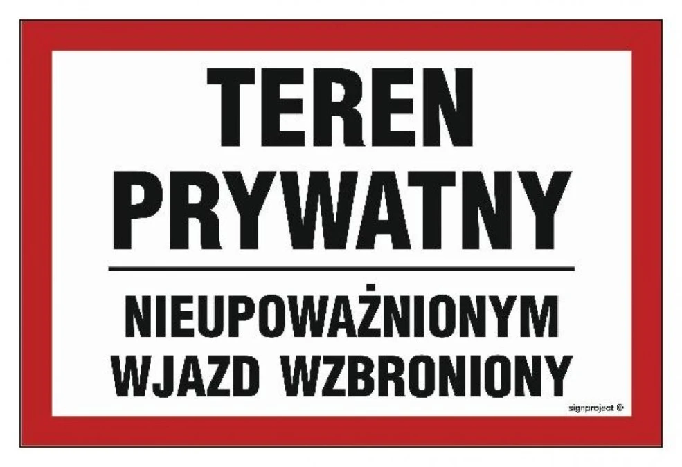 ZNAK - NC073 Teren prywatny nieupoważnionym wjazd wzbroniony 20 x 13,3 cm PN - Płyta 1mm