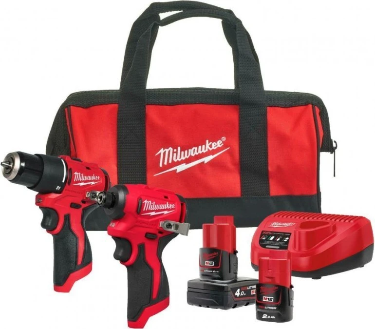 Milwaukee Kompaktowy zestaw POWERACK M12 BLPP2B-422B 2 maszyny, 1x 2.0Ah, 1x 4.0Ah akumulator i ładowarka w torbie